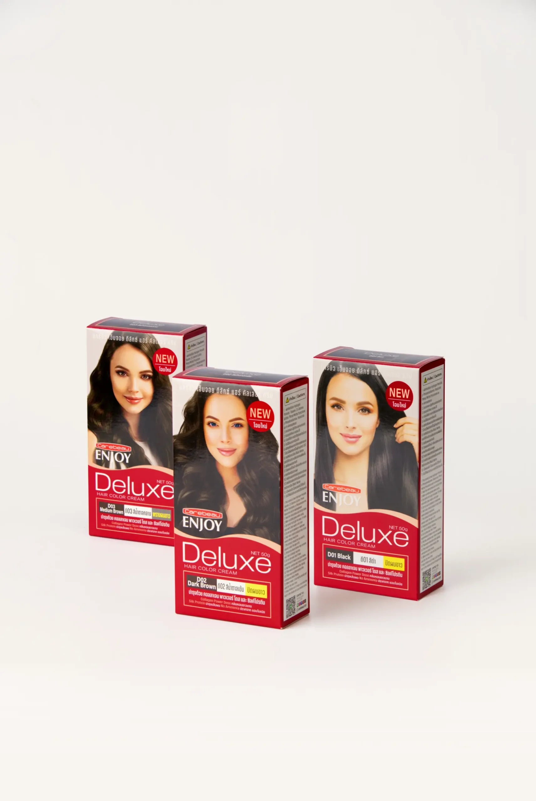D01 สีดำ, D02 สีน้ำตาลเข้ม, D03 น้ำตาลกลาง, D04 สีน้ำตาลอ่อน