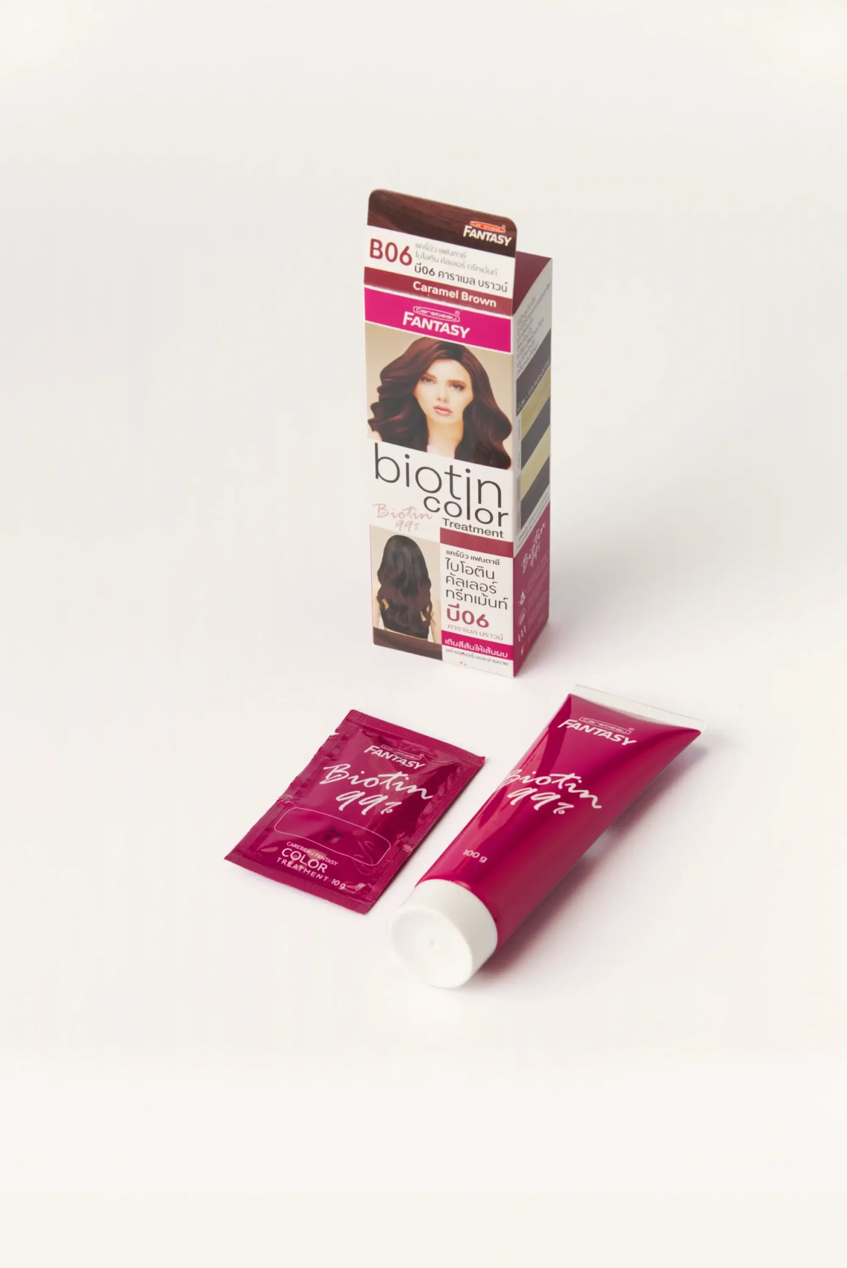 แคร์บิว แฟนตาซี ไบโอติน คัลเลอร์ ทรีทเมนท์ ช่วยเปลี่ยนสีผมของคุณโดยไม่ทำให้ผมเสีย ด้วยการผสมผสานของไบโอตินบริสุทธิ์ 99% น้ำมันอัลมอนด์ โปรตีนไหม และโปรวิตามินบี5 บำรุงเส้นผมจากโคนจรดปลาย ให้ผมนุ่มลื่น เงางาม และแข็งแรง มีให้เลือกถึง 6 เฉดสี สีสันสวยงาม ให้สีติดทนนานไม่หลุดง่าย